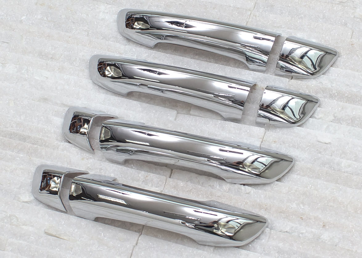 Dekoracyjne, chromowane nakładki na klamki to dodatek, który uzupełnia stylizację samochodu nutą sportowej elegancji. Idealnie dopasowane do linii samochodu, odmieniają wizerunek klamek modelu Passat, czyniąc z nich prawdziwą ozdobę samochodu. Produkt wykonany z wysokiej jakości chromowanego tworzywa ABS.