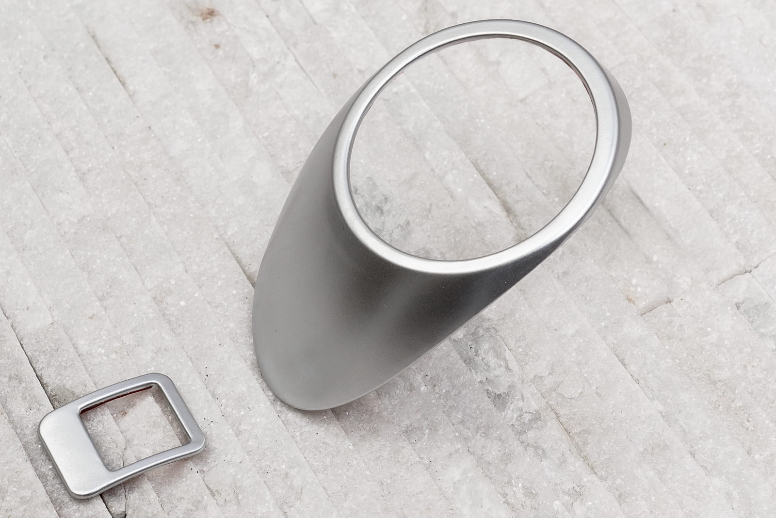 Dekoracyjna nakładka sprawia, że przełącznik świateł, oprócz pełnienia swej praktycznej funkcji, stają się prawdziwą ozdobą kabiny samochodu. Idealnie dopasowany kształt oraz satynowa struktura nakładki sprawiają, że przełącznik zyskuje pełną elegancji, stylową ramę. Element zaprojektowane został tak, by idealnie współgrać z innymi elementami wykończenia wnętrza samochodu, dopełniając pełen klasy efekt stylizacyjny.