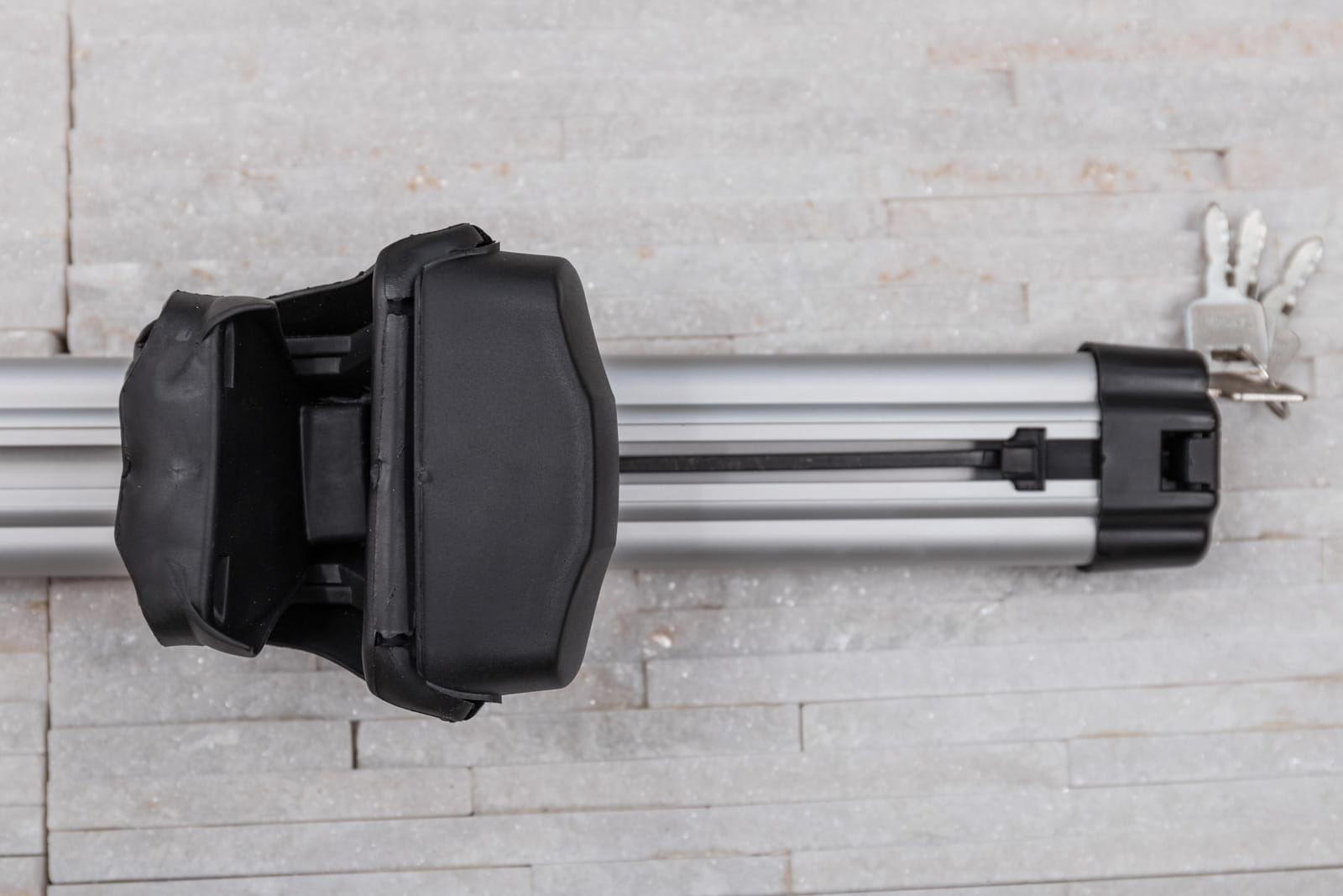W komplecie znajdują się: dwie belki aluminiowe i cztery zaciski i system zabezpieczenia z kluczykami.