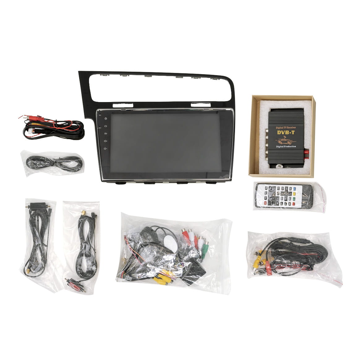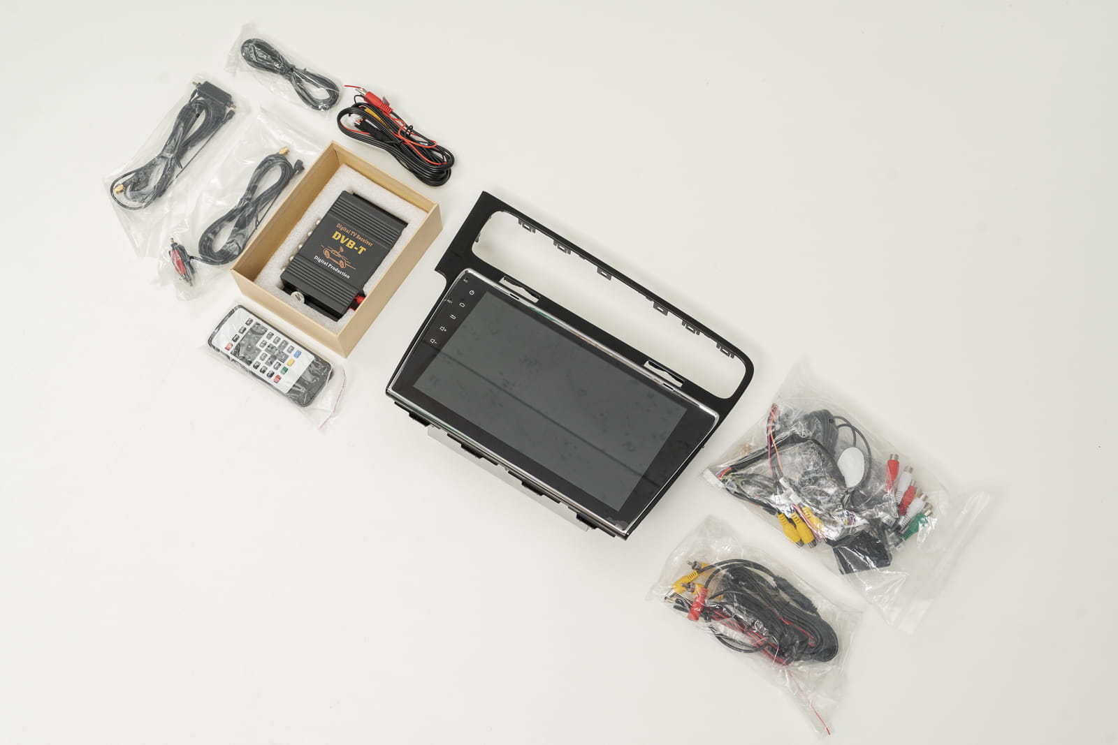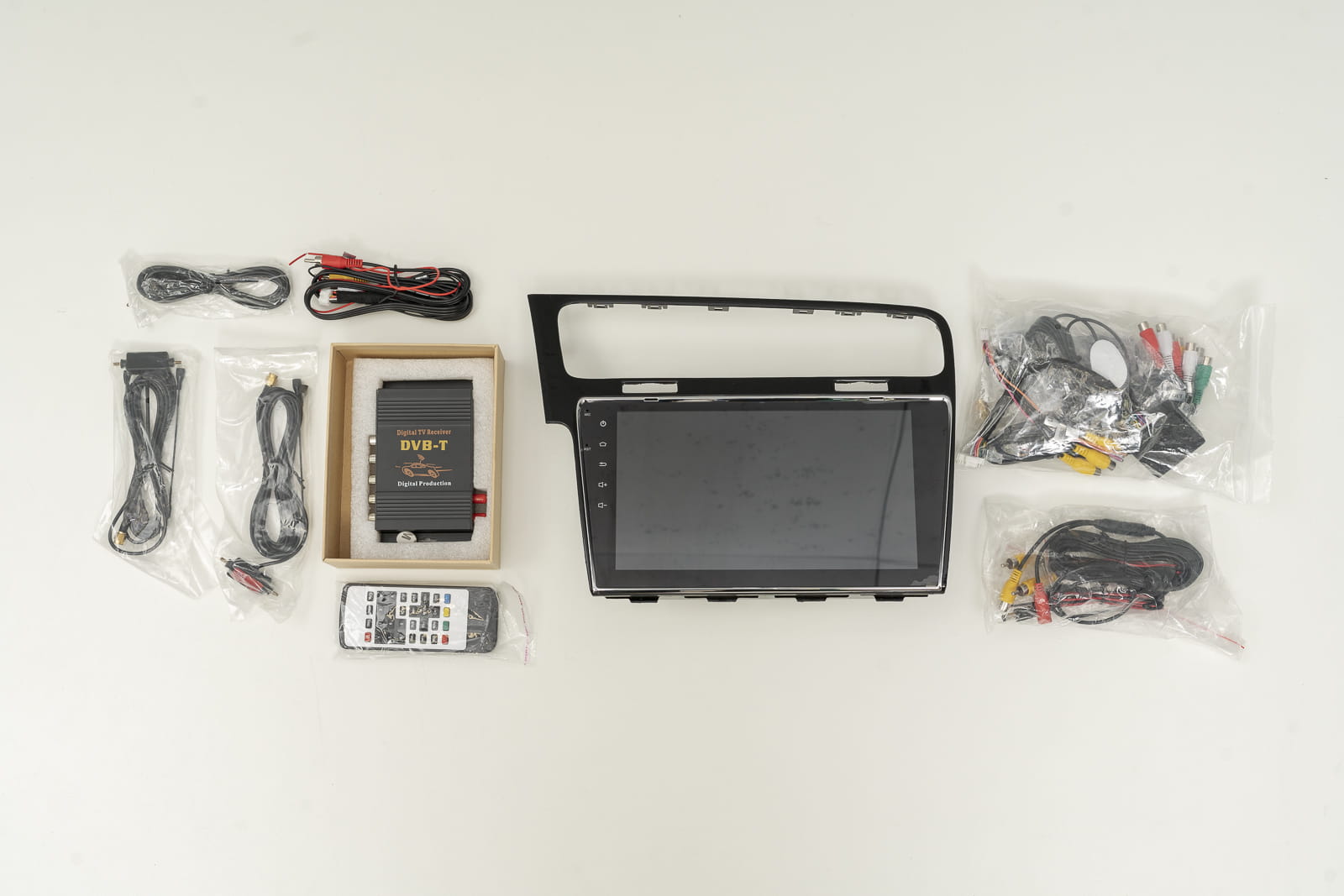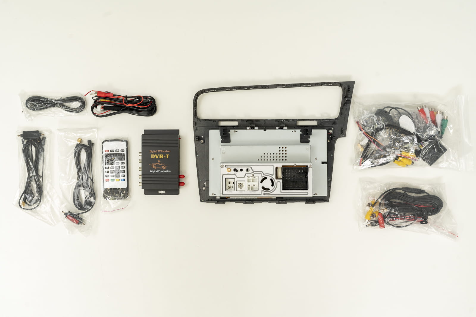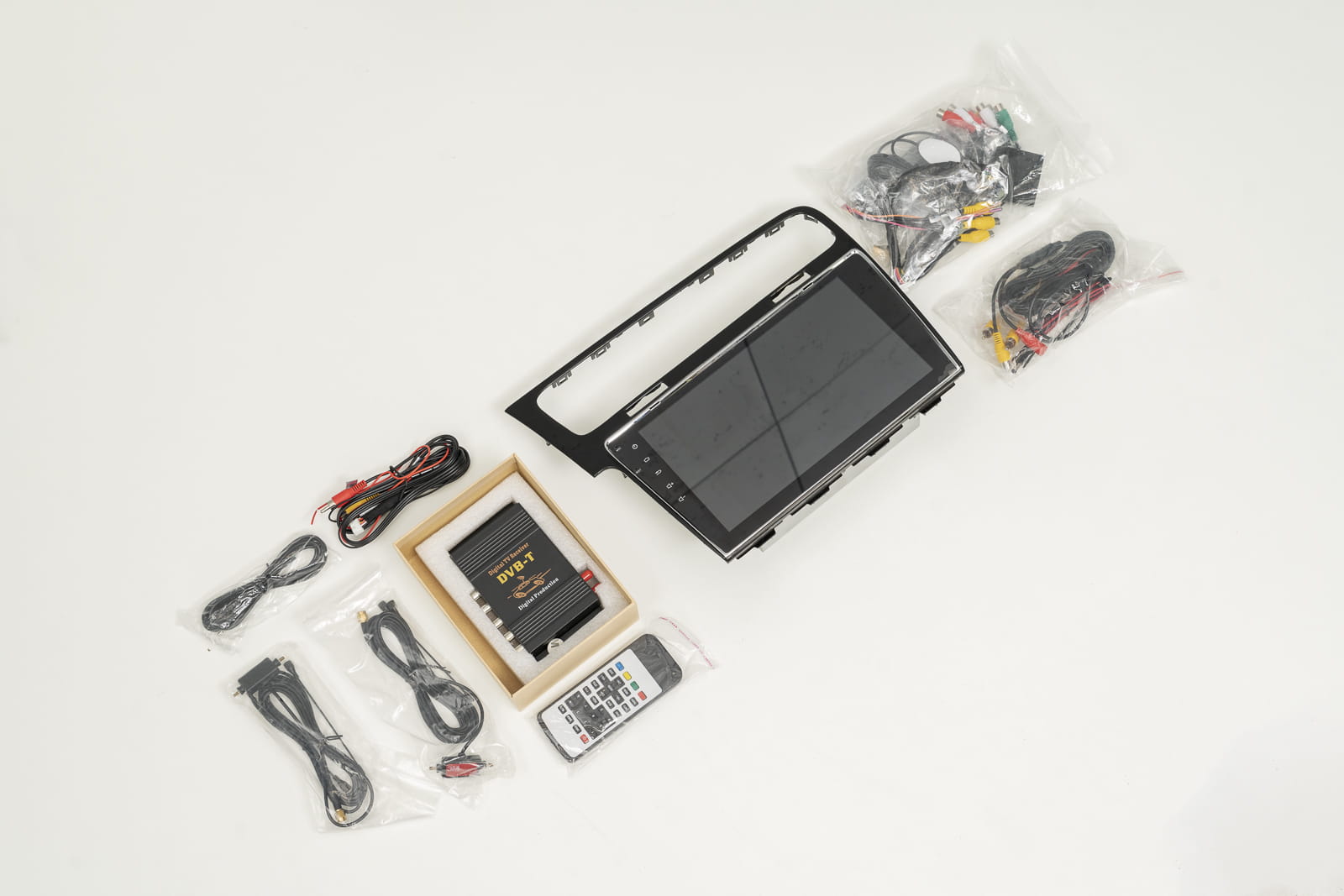 Nawigacja z ekranem dotykowym 10,1" + TUNER TV. Zestaw dedykowany do modelu VW GOLF 7 Przedstawiamy zestaw skomponowany tak, by obsługa multimediów w Twoim samochodzie była jeszcze prostsza i wygodniejsza. Dołączony w zestawie tuner DVB-T umożliwia rozszerzenie pokładowego systemu multimedialnego o funckję telewizora. Specyfikacja: