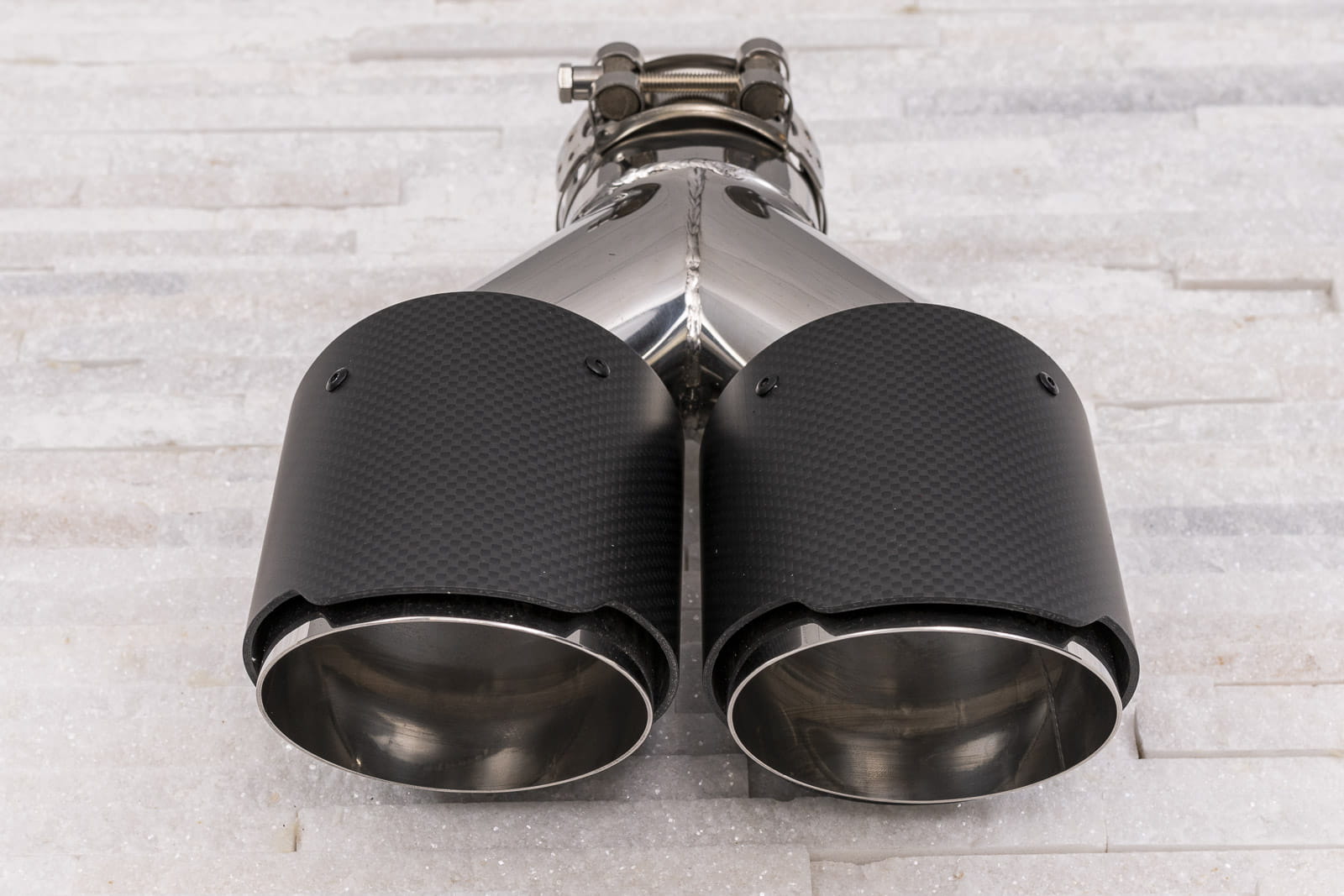 Montaż odbywa się poprzez nałożenie elementu na oryginalną rurę wydechu oraz dokręcenie znajdujących się w zestawie śrub, mocujących końcówkę na stałe. Zalecamy montaż profesjonalny.