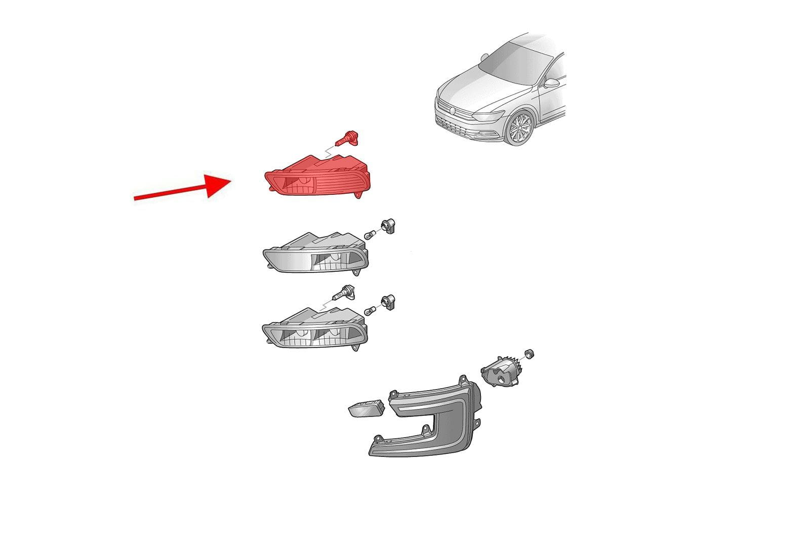Lampa przeciwmgielna, halogen przedni lewy, dla VOLSKWAGEN PASSAT B8 (3G) 2015-2019 (wersja przed faceliftingiem). Produkt pasuje do wersji Sedan/Kombi/ Alltrack. W zestawie znajduje się żarówka H8!